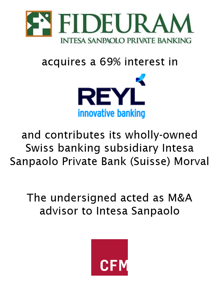 • Fideuram - ISP PB acquires a 69% interest in REYL and contributes its wholly-owned Swiss banking subsidiary Intesa Sanpaolo Private Bank (Suisse) Morval (“ISPBM”).