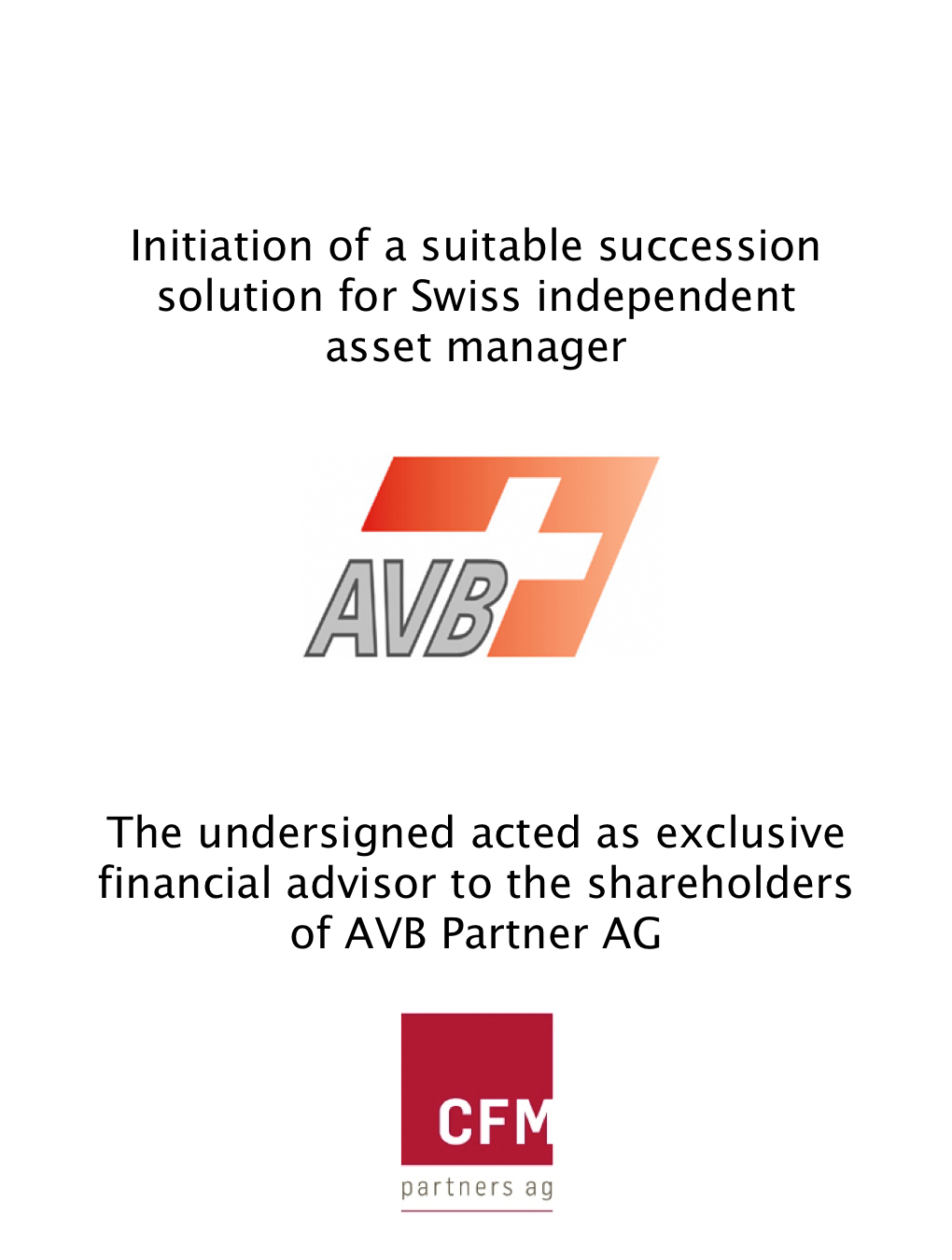 - CFM was exclusively mandated by AVB to manage the succession planning process and find a suitable solution.
